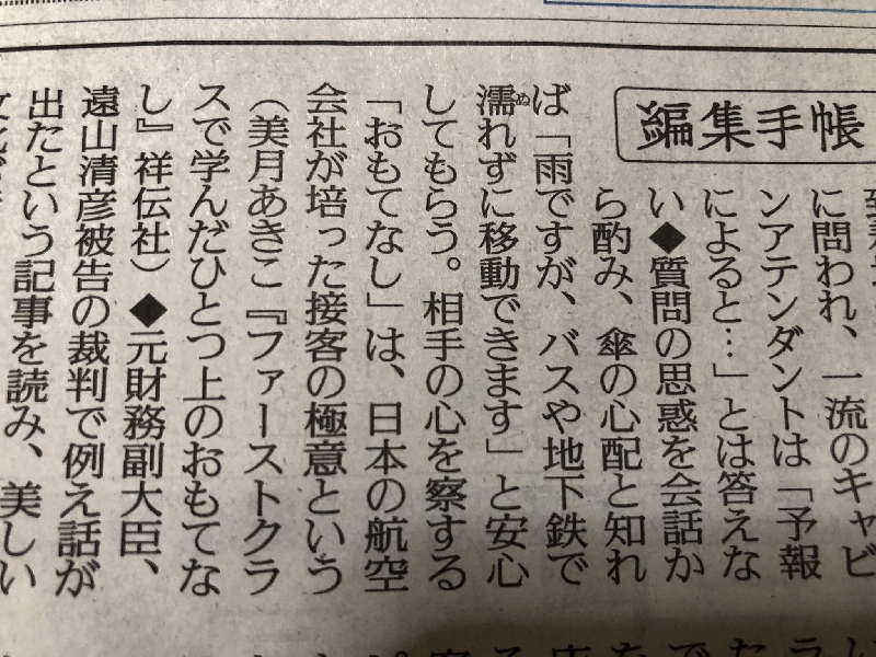 読売新聞 朝刊第一面「編集手帳」に引用されました