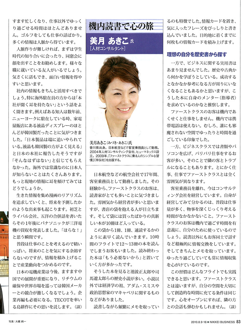 日経ビジネス 8月9日 「ファーストクラスに乗る人の読書術」 |