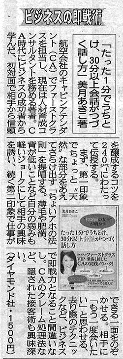 | 夕刊フジ 9月1日号(産業経済新聞社) 「たった1分でうちとけ、30分以上会話がつづく話し方」紹介 |