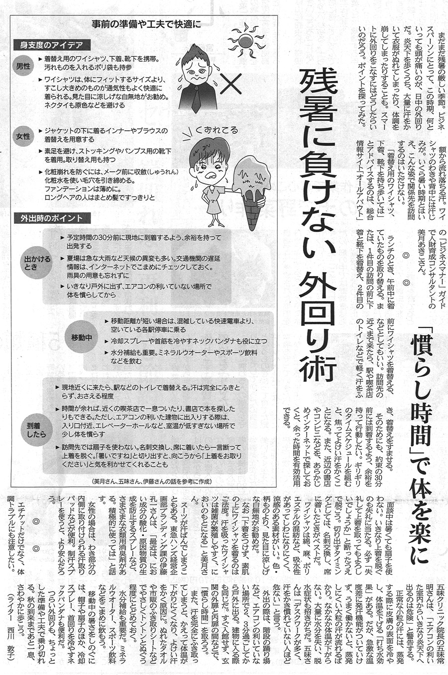 日経新聞 日経プラス1 9面 8月21日 「残暑に負けない外回り術」 |
