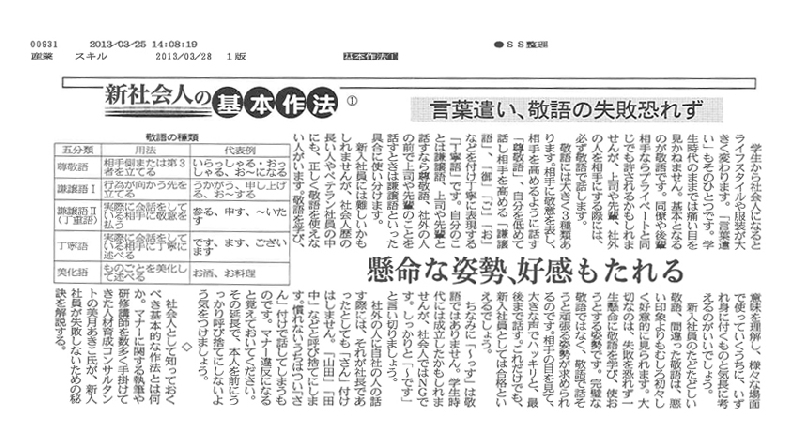 マナー習得で好ダッシュ